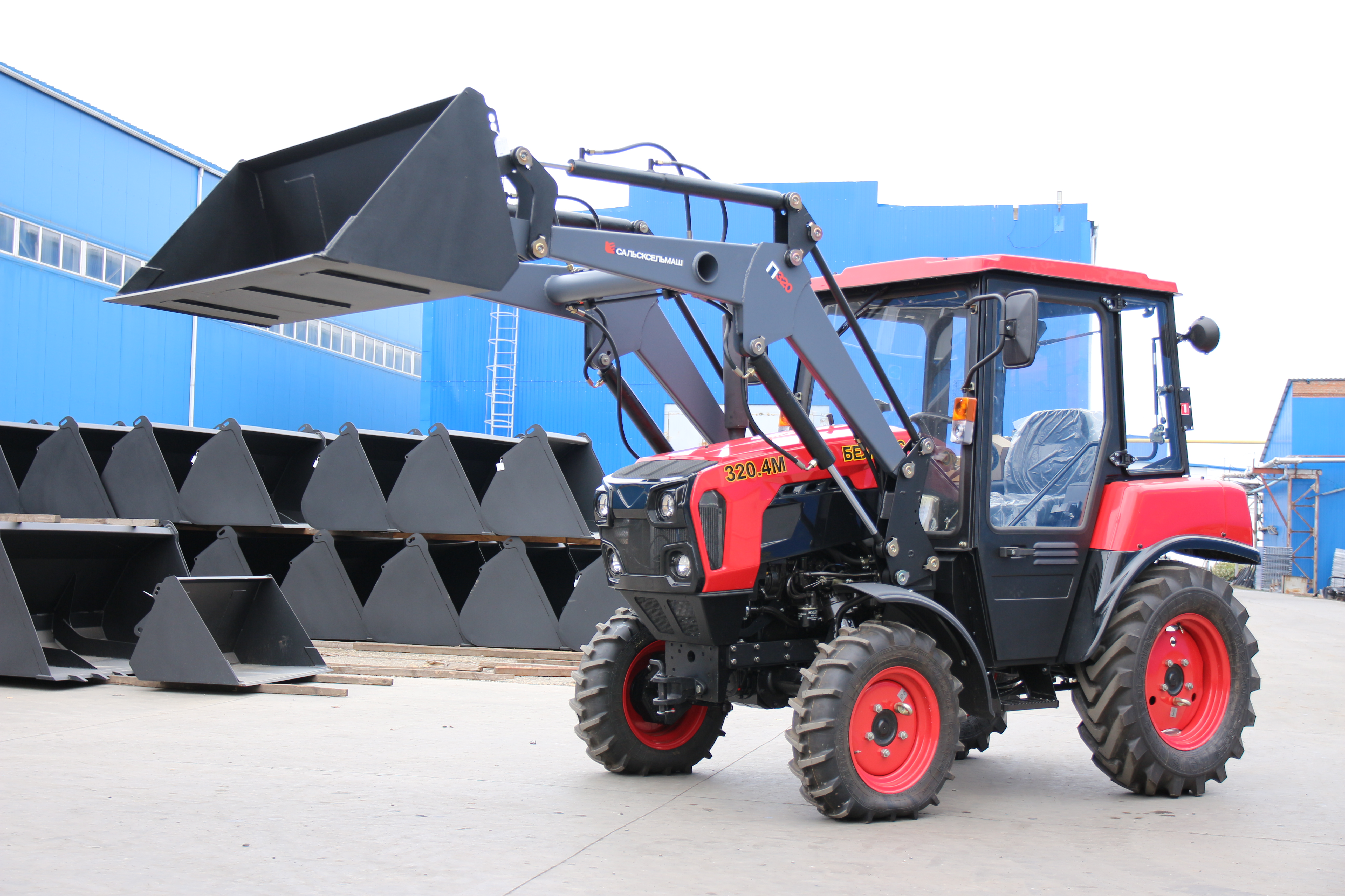 Купить навесной фронтальный погрузчик (КУН) П320-0А для трактора МТЗ 320 по выгодной цене можно напрямую у завода-производителя ООО «Сальсксельмаш» или через сеть официальных дилеров.